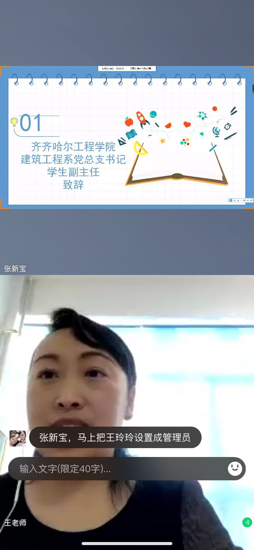 一场突如其来的新冠肺炎疫情,致使我们居家生活,也开始在线学习。为进一步加强班级管理和家校共建,3月18日17时,工程管理专业2017级云班会及云家长会拉开帷幕。系党总支书记、学生工作副主任王丽萍,工程管理专业长张好徽及工程管理专业2017级学生及其家长参加会议。