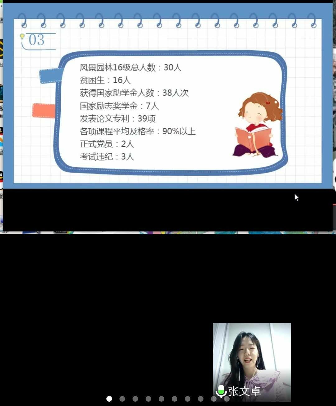 在这个防疫的特殊时期,我们从未停止前进的脚步。3月19日下午17时,通过腾讯会议平台进行的风景园林专业2016、2017级以“疫”样云班会、共筑“心”桥梁为主题的云家长会及云班会准时召开。