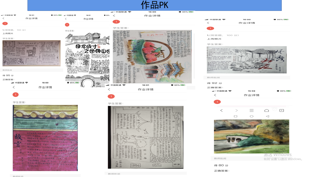 2.作品PK,做到学习有总结。在作品评价环节,采用腾讯会议屏幕共享的功能,教师可以随时看到学生在线人数,同时可以随时与学生进行连麦提问或者抢答等环节,教学互动效果较好。在课程答疑环节,学生可以通过屏幕共享的方式和同学们分享他的作品图片的同时进行汇报,同时高老师采用学习通同步打分的功能,每位同学汇报之后,教师点评的同时同学们进行实时打分,同学们参与程度较高,较为热情,所有的同学全部认真完成作业,效果较好。线上教学不单单是讲授知识,更是教学生如何学习,养成良好的学习习惯更为重要,如何去引导需要更多的努力和探索。
