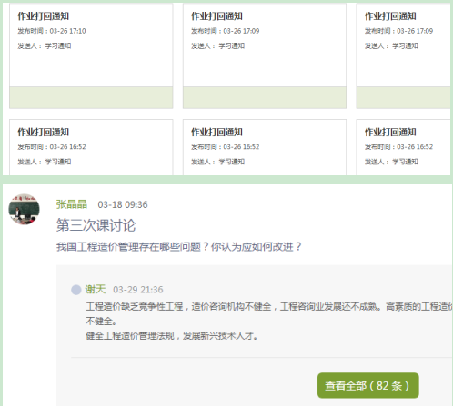 基本情况:专业必修课,重点要求学生掌握和理解建设全过程工程造价管理的原理与方法。3月4日开课,使用ZOOM软件直播+学习通辅助,每周4课时,应到84人,实到84人,到课率100%。