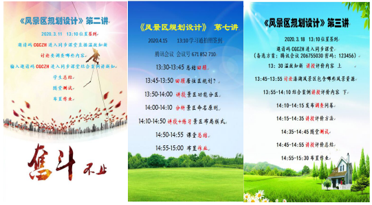 《风景区规划设计》是风景园林171班本学期开设的专业选修课,风景园林专业潘娜老师利用学习通+腾讯会议+QQ群实施了在线教学。
