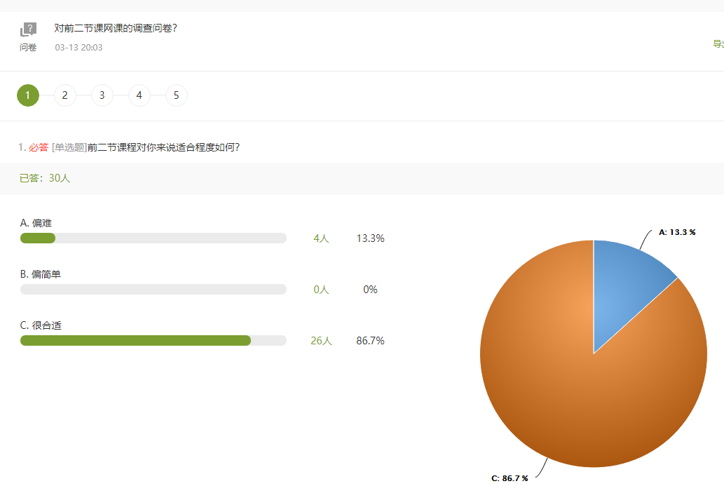 为了更好的了解学生掌握情况,在课后对学生测试易错题、作业的共性问题进行汇总,对作业、测试不合格的学生打回重做。将学生上节课的思维导图生成二维码,设置课堂投票、问卷内容,每二节课给学生发一次对网络课程改进的调查问卷