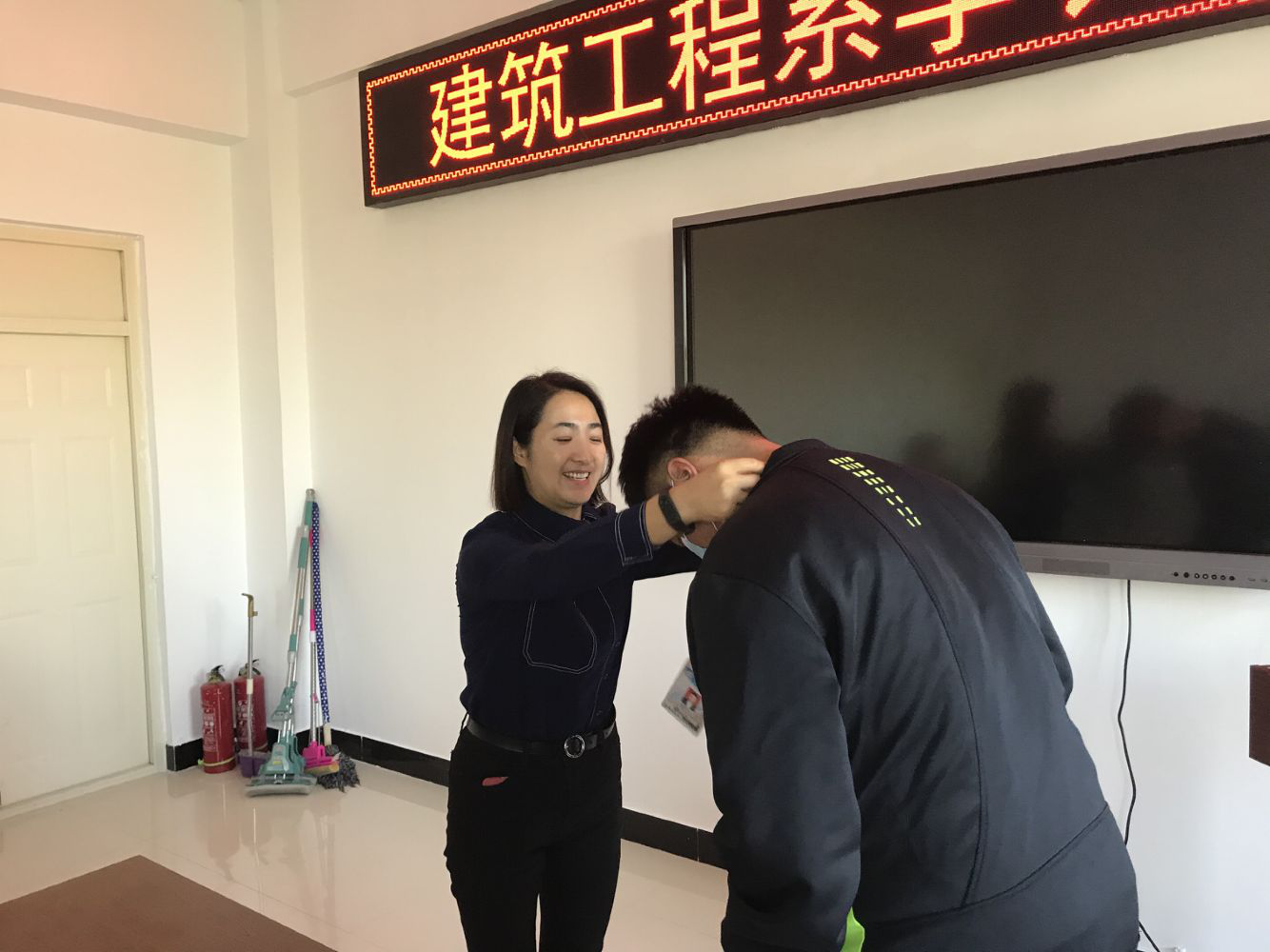 首先,建筑工程系主任陈景鑫为各位学长授带工作牌,并对学长们为迎接新生的准备工作给予了高度的鼓励与肯定,并希望各位学长在以后的工作中更加认真负责,做好迎新工作。