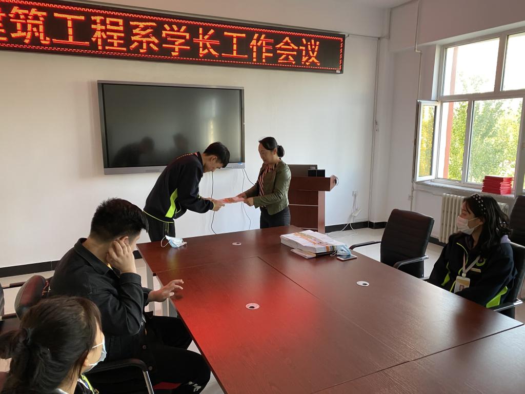 建筑工程系党总支书记王丽萍为各位学长。颁发了学长日志手册,希望各位牢记学长守则,更好的完成学长工作。