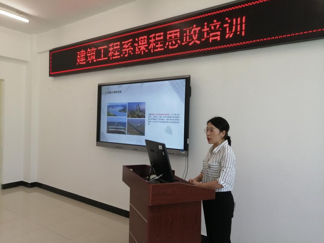 6月1日下午,在二号教学区2409会议室,建筑工程系郝丽娜老师分享了参加哈尔滨广厦学院“聚焦思政·立德树人——2021全国民办高校课程思政高端论坛”经验,并结合《土木工程材料》对全体教师进行了课程思政培训。