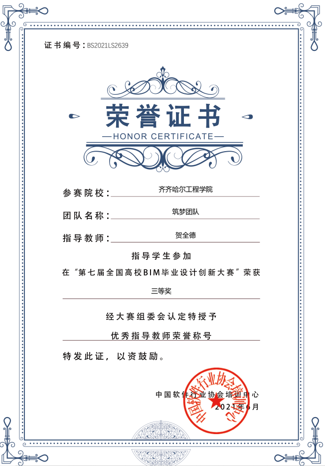第七届全国高校BIM毕业设计创新大赛落下帷幕,齐齐哈尔工程学院土木工程专业、工程管理专业共有8支团队参与比赛。土木工程专业2018级学生霍春晓、朱佳乐、张立志、赵晶晶、闫一鹏组建的“筑梦团队”获得“BIM土建建模应用”赛项三等奖;由石依凡、常哲强、石有峰、郝雷鹏、马晓宁同学组建的“白马非马”团队获得优秀奖;工程管理专业2019级苗晶和2020级学生杨春生、关晨旭、胡雯静组建的团队获得“BIM建设工程管理应用”赛项优秀奖;工程管理专业2018级吴世龙和2020级学生王涵、程正宇、陈贻民组建的团队获得“招投标应用”赛项优秀奖。