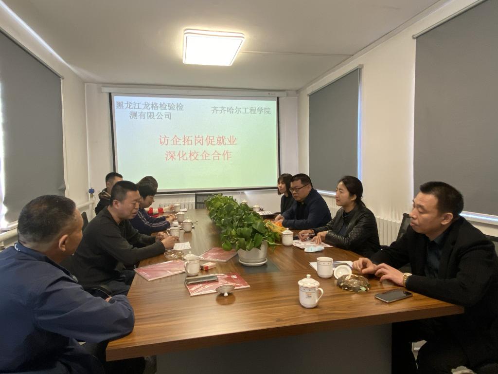 4月28日下午,副院长张振笋、建筑工程系主任陈景鑫、副主任徐明、土木工程专业负责人钟美慧、骨干教师贺全德组成的“访企拓岗”工作组深入黑龙江龙格检验检测公司开展走访调研,受到总经理杨传东先生的欢迎。