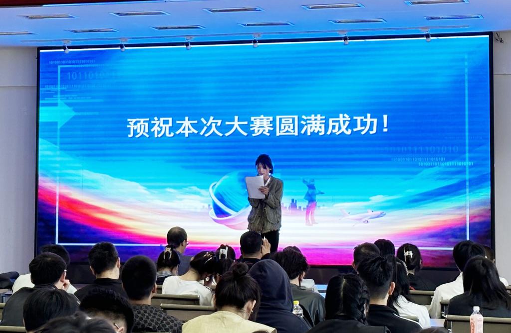 仪式上,学生代表工管221班姜烁同学代表全体参赛同学上台发言,表达了认真参赛、努力争取优异成绩的信心和决心,并为大赛积极做好各项准备工作。