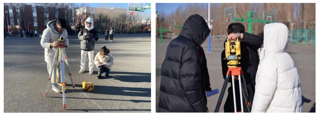 为展现技能学习成果,结合基础工程施工测量任务,学生利用水准仪、经纬仪和全站仪开展技能竞赛,本次比赛设置了不同难度级别的测量任务,既有简单的室内测量,也有复杂的户外测量。参赛队员们从规范操作流程开始,经过精确的读数和计算,最终给出了准确的测量结果。