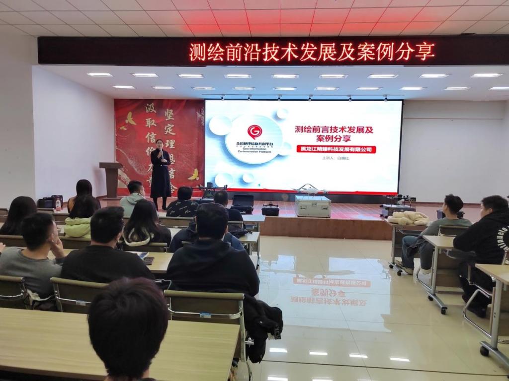 副总经理白晓红从公司简介、传统测绘数字成图、无人机技术三维测图、实景三维模型生产及装修等内容进行全面介绍,让学生了解目前最新的测绘技术手段及应用方向。黑龙江精臻科技发展有限公司是全国地理信息共创平台黑龙江分部,公司专注“低空无人机航测”应用型技术的普及与推广,已形成专业技术人员、专业飞手、教员、工程师为核心的专业技术团队。