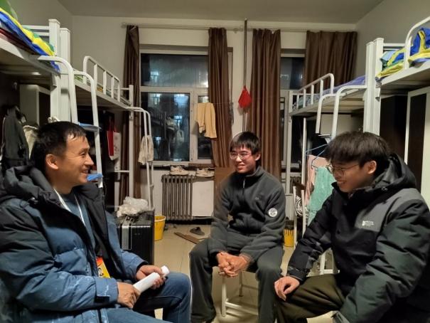 辅导员蔡爽,于敦续,陈星月,以及生涯导师徐立志深入走访11公寓学生寝室,与学生面对面了解详细情况,解决实际问题。