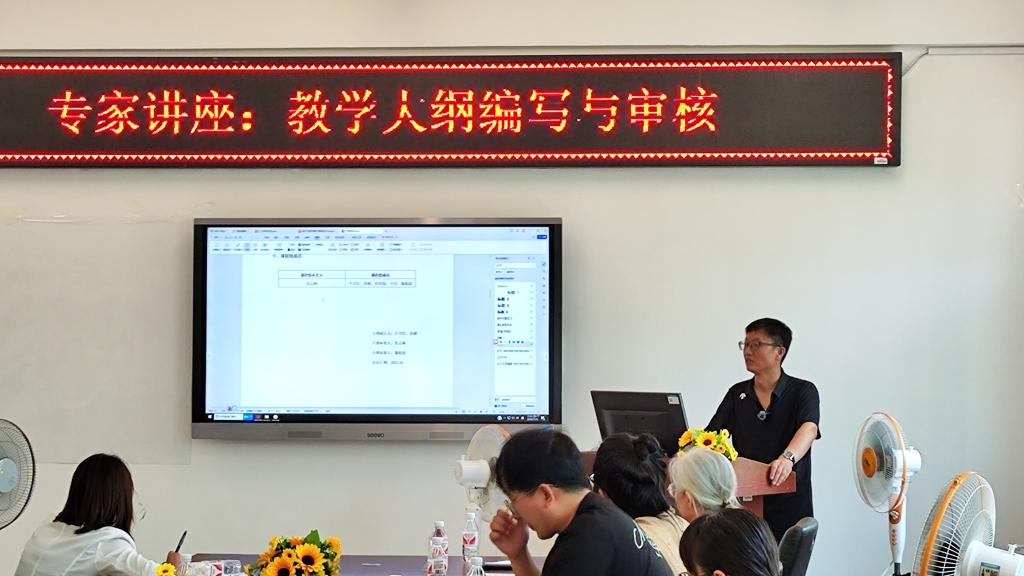 培训最后,徐明向全体教师强调,各位老师每个人都要重视教学大纲的编写工作,今天的培训是一个新的起点,各位老师要持续改进,不断优化教学大纲,为迎接审核评估提供有力支撑。