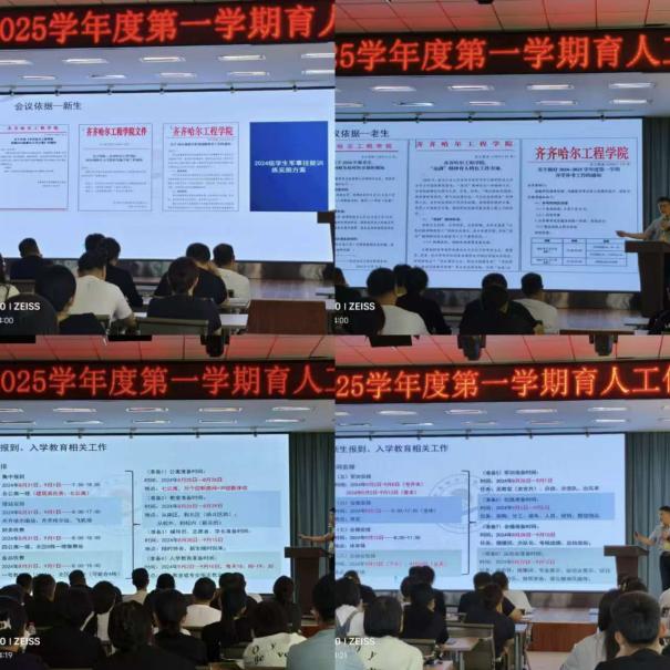 建筑工程系党总支副书记刘贤鹏从新生报到,老生返校以及新学期育人工作计划三个方面进行分析讲解。着重强调了齐齐哈尔工程学院育人教育理念,同时他针对上学期建筑工程系学风建设情况进行了分析总结,强调各辅导员以及生涯老师们对学生的学习和生活加强了解,担当起责任。