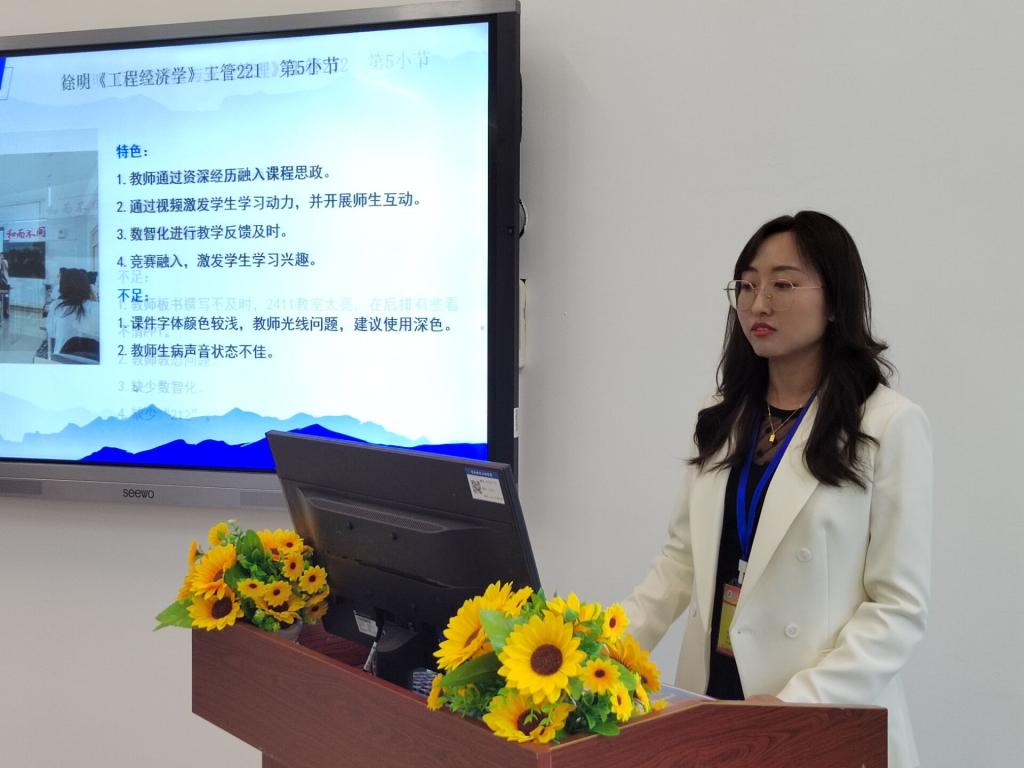 针对开学第一天,磨课小组成员进班听课,并针对绪论课的授课情况进行了反馈。作为新学期的第一课,任课教师教学规范,上课有激情;学生高喊“亮剑口号”,学习有热情,充分展现了建筑工程系的教学风采。徐喜辉老师在土木223班讲授《装配式建筑概论》课程时,说课过程中充满激情,将勤奋、努力、亮剑精神、职业道德、职业精神等内容自然融入教学过程中,使课程思政“如盐入水”,徐老师结合自己多年的企业经历结合实际工程案例进行课程导入,充分体现了“以学生为中心”的思想。徐明老师在工管221班讲授《工程经济学》课程时,教师通过自身的成长经历融入课程思政,激励学生终身学习,通过视频融入激发学生学习动力,并开展师生互动,结合数智化进行教学反馈及时,充分起到了绪论说课的典型示范作用,是青年教师学习的榜样。在听课、磨课过程中,也发现了一些问题,在听取赵晓明、孙静老师外聘教师授课时,也发现了课程思政、数智化融入不明显,互动较少等问题,磨课小组已与授课教师、专业长进行沟通和反馈,并预约下一次听课时间,关注教师的改进情况。