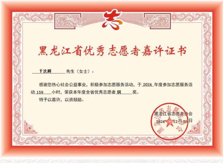 于汶麟,土木与管理学院财务管理专业2025届毕业生,荣获黑龙江省优秀志愿者,省优秀毕业生,现就职于黑龙江省哈尔滨市卉淇品牌管理有限公司。