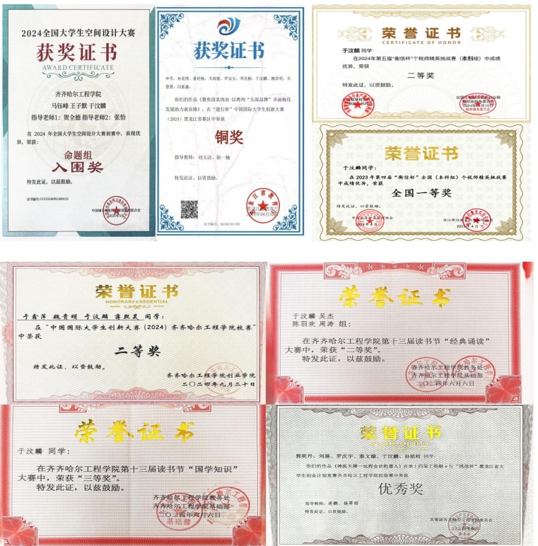 于汶麟在各类竞赛中表现突出,个人奖项: