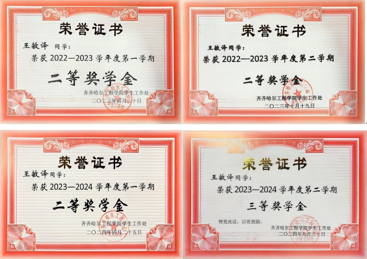 在学习的征程中,王敏译始终保持着对知识的强烈渴望。课堂上,全神贯注地聆听老师的讲解,积极与老师互动,不放过任何一个学习的机会。每一个知识点都如同拼图的碎片,被她精心收集、整理。课后,主动前往图书馆,沉浸在书的世界里。从专业教材到学术前沿著作,广泛涉猎,不断拓宽自己的知识面。遇到难题时,不轻易放弃,而是主动向老师和同学请教,与她们共同探讨解决方案。凭借着这份努力,学习成绩在班级中一直名列前茅,多次获得学校奖学金,成为同学们学习的榜样。