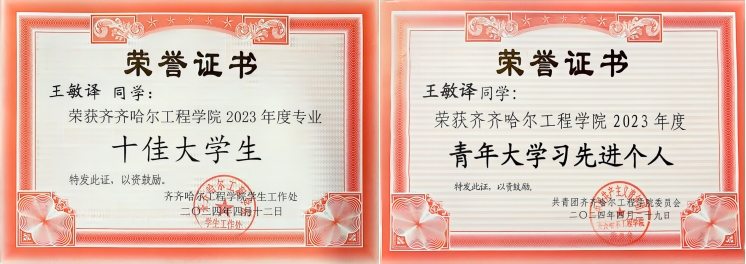 2024年4月 2023年度十佳大学生;