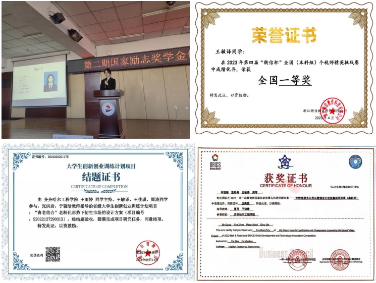 2023年3月 一带一路暨金砖国家技能发展与技术创新大赛——金融科技综合能力赛项本科组(黑龙江赛区)选拔赛优秀奖;