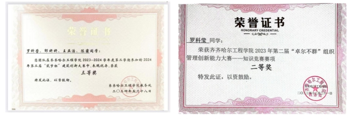 2023年12月 齐齐哈尔工程学院 “卓尔不群”组织管理创新能力大赛“二等奖”;