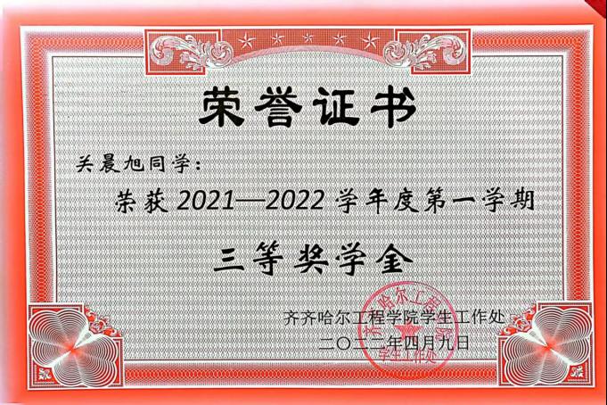 关晨旭始终以自己的目标严格要求自己,以勤奋、踏实、认真的态度对待学习,取得了优异的成绩。始终保持着对知识的渴望和追求,她深知只有通过不断地学习,才能不断提升自己的素质和能力。学习成绩始终名列前茅。在大一和大二期间获得两次校奖学金,大三获得一次校级奖学金。积极参与专业技能大赛,拓展自己的知识以及专业技术实践能力,在学术竞赛和创新创业项目中,能够明确团队的目标和分工,协调各方资源,确保项目的顺利进行。善于分析问题,提出解决方案,并鼓励团队成员积极参与讨论和创新。