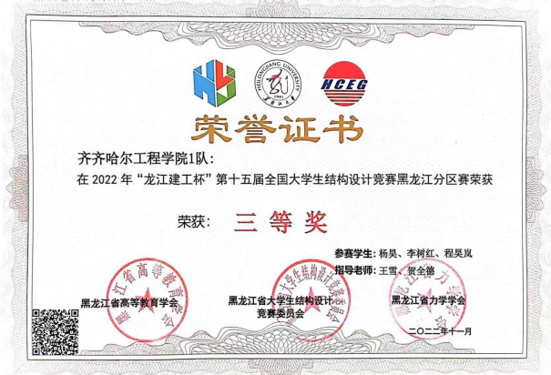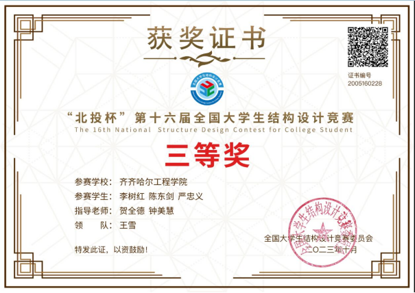 学习是学生的天职。“做最好的自己”就是李树红同学的座右铭,他常常以此来鞭策自己,严格要求自己,所以每当遇到学习中的困难和挫折,他都能正确面对,凭借自己的毅力和信心克服困难,以积极向上的心态去学习。在校期间,他曾获得1次国家励志奖学金、1次校级一等奖学金、1次校级二等奖学金和2次校级三等奖学金。在专业技能竞赛方面,他更是成为整个专业学生学习的榜样,他多次获得校级专业技能竞赛一等奖,先后参加了“龙江建工杯”第十五届全国大学生结构设计竞赛黑龙江分区赛、第九届全国高校BIM毕业设计大赛、“建科杯”第十六届全国大学生结构设计竞赛黑龙江分区赛、“北投杯”第十六届全国大学生结构设计竞赛,并依次获得省级三等奖、国家级优秀奖、省级一等奖和国家级三等奖。