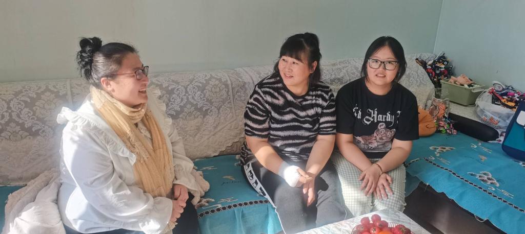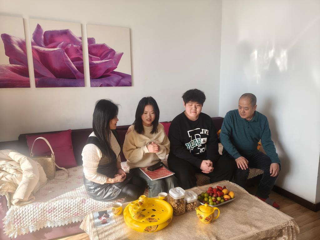 在家访过程中,三位辅导员与家长进行了亲切且深入的交流。辅导员宋雪微对刘越翔家长说道:“刘越翔同学作为学校文艺骨干,为校园文化活动做出了不少贡献。在学科知识的掌握上还有提升空间,后续可以一起引导他改进学习方法。”