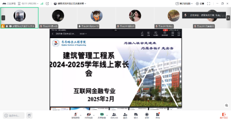 为了加强家校沟通,向家长汇报学生的学习进展及专业发展动态,共同探讨如何更好地支持学生的成长。2月26日,互联网金融专业召开2024-2025学年度第二学期线上家长会。本次会议由互联网金融专业辅导员刘天缘主持,互联网金融专业专业长沈斯文和全体学生及家长参加。