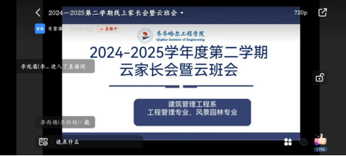 为促进家校沟通,形成家校共育育人新局面,建筑管理工程系辅导员宋雪微老师于2月27日通过线上平台,召开2024—2025学年度第二学期线上家长会暨云班会。本次会议面向工程管理、风景园林专业的学生与家长,生涯导师参会。