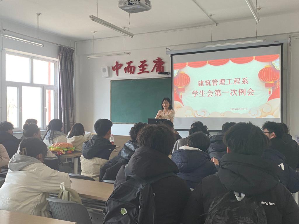 为更好地开展新学期建筑管理工程系学生会工作,3月11日,在二号教学区1302教室召开了新学期学生会第一次工作例会,会议由学生会指导教师刘天缘主持,学生会全体成员参加。