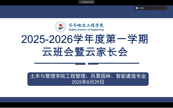 为精准传达新学期教学安排、明确学业与安全要求,凝聚家校协同育人力量,帮助学生快速适应新学期节奏,家长全面掌握学生在校管理细则,8月28日上午,辅导员宋雪微召开风景园林专业、工程管理专业、智能建造专业新学期云班会暨云家长会。本次会议由宋雪微老师主持,风景园林专业、工程管理专业、智能建造专业学生、学生家长、专业负责人、生涯导师参会。