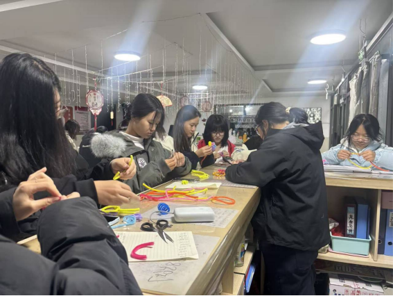 活动现场,色彩斑斓的扭扭棒成为连接彼此的“友谊桥梁”。那些往日里仅在公寓楼道偶遇的同学,因共同构思、制作扭扭棒挂件——无论是灵动的小挂件、可爱的卡通形象,还是别致的装饰摆件,逐渐从最初的沉默不语,到主动交流缠绕、拼接的技巧,再到毫无保留地分享创意想法。在手指的灵活操作与扭扭棒的不断变换中,“公寓即社交乐园”的惬意氛围慢慢弥漫,“同住不相熟”的隔阂被这场充满创意的互动悄然消解。