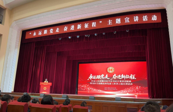10月14日,为深入贯彻新时代劳动教育理念,弘扬劳模精神、工匠精神,辅导员宋雪微带领学生参加齐齐哈尔市工会举办的以“永远跟党走,奋进新征程”为主题的国家劳动模范先进事迹宣讲会,通过劳模们的精彩宣讲开展学生思想教育,进一步探索“大思政课”与劳动教育实践课的融合。