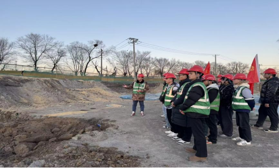 工程管理专业学生党支部创新组织活动形式,将支部活动延伸到施工一线。同时校外课堂行知班在工地现场设立党员先锋队,确保项目建设与人才培养同步推进。