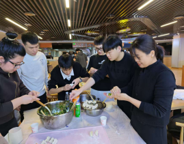 活动现场暖意融融,包饺子成为本次联欢会的核心环节。师生们分工协作、默契配合,展现了实践班学子的协作精神与动手能力。饺子出锅装盘,大家围坐分享美食,在烟火氤氲中拉近了心与心的距离。席间,师生畅谈实践心得,回顾校企协同育人中的点滴成长,老师们结合产教融合的育人目标寄语学子,鼓励大家将实践中积累的经验转化为扎实的专业本领,在知行合一的道路上稳步迈进。留校参与实践的同学们纷纷表示,不仅驱散了不能归家的思念,缓解了实践期间的压力,更让大家感受到了集体的温暖。