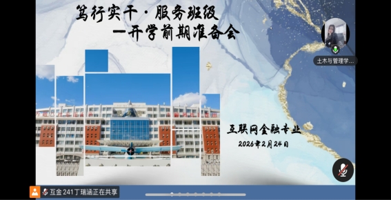 为明确新学期工作方向,强化学生干部的责任意识与服务能力,确保开学各项工作平稳有序开展,互联网金融专业于2月24日召开了以“笃行实干·服务班级”为主题的新学期干部工作准备会。会议由辅导员刘天缘主持,互联网金融专业所有班级干部参会。