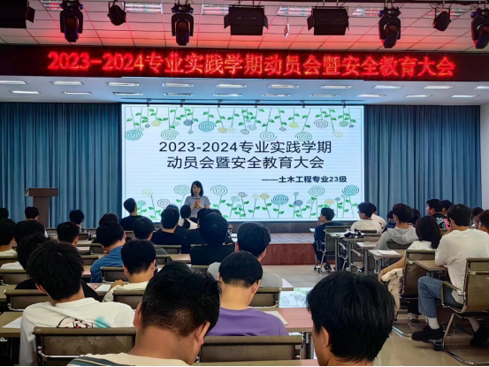 为提高同学们的专业素养,为即将到来的专业实践学期做准备,土木工程专业专业长钟美慧老师及辅导员蔡爽老师和陈星月老师于6月14日在2#2508对土木工程专业全体学生召开专业实践学期动员会暨安全教育大会。