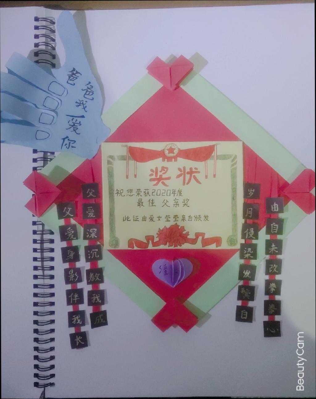 此次活动需要同学们自己制作一张感恩父爱的贺卡送给自己的父亲,活动主要分为两个阶段,先通过复赛选出十位同学的优秀作品,再经过决赛评委打分后决出一二三等奖。经过系学生会科创部的筛选,6月21日进入决赛的同学们利用腾讯会议app展示了自己的作品并讲述着自己的贺卡设计理念,每位同学联系着与父亲的真挚故事,用心感受父亲那份沉重的爱。给人印象最深的是一位同学说想像小时候一样牵着父亲的手,因为他觉得父亲带给孩子的安全感是任何人都无法代替的。在父母眼里,我们永远都是孩子,我们也要学会感恩,用自己的方式回报父母。