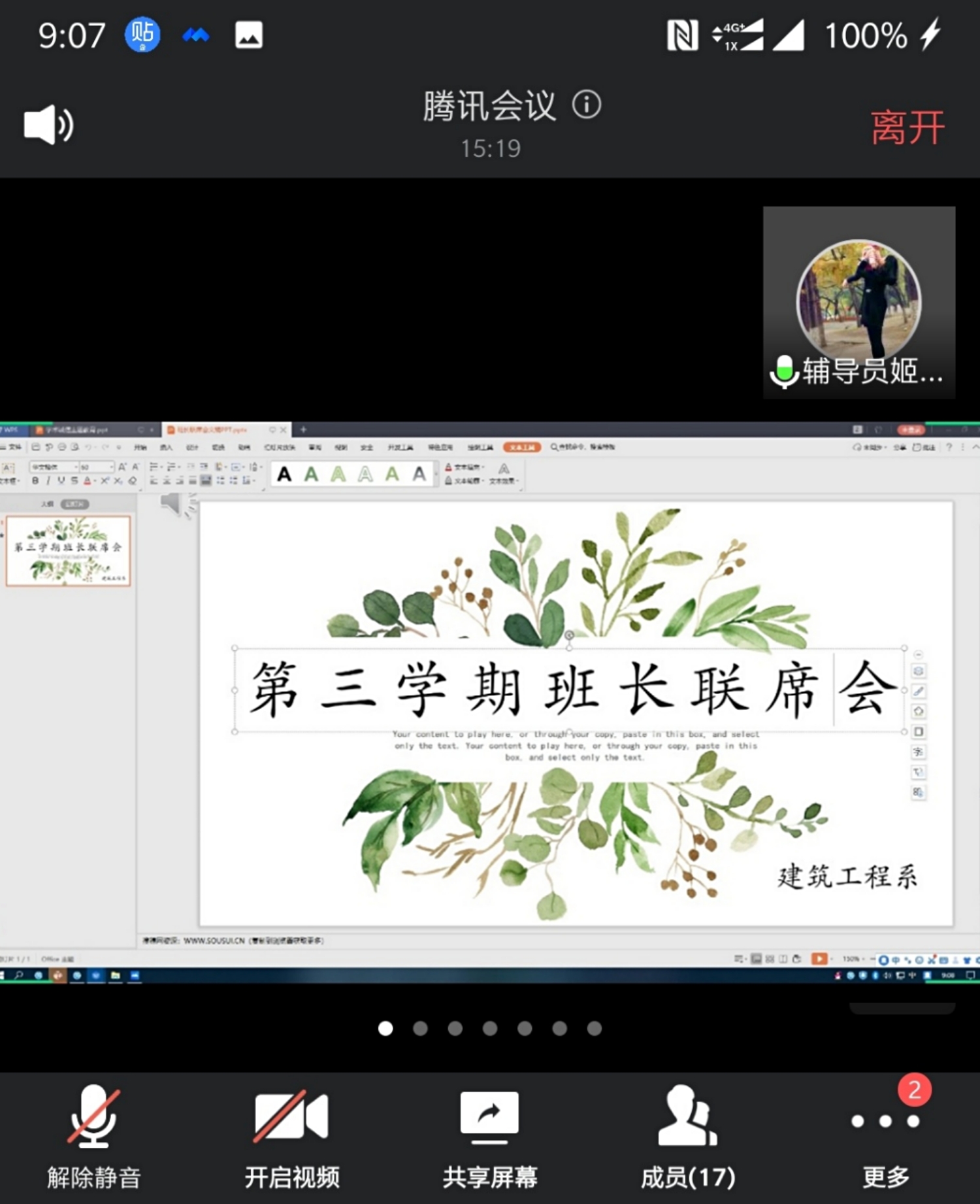 在会议中,班长代表进行班级第三学期实习情况汇报。通过班长代表的发言,了解到绝大部分同学能够很好的完成线上、线下实习;由于2019级同学第一次参加第三学期,存在不解以及迷茫之处,专业老师和辅导员老师都一一给予耐心指导解决。鉴于目前国内个别地区疫情暴发,姬老师再次强调,所有同学务必在做好防疫安全工作的前提下开展第三学期实习。