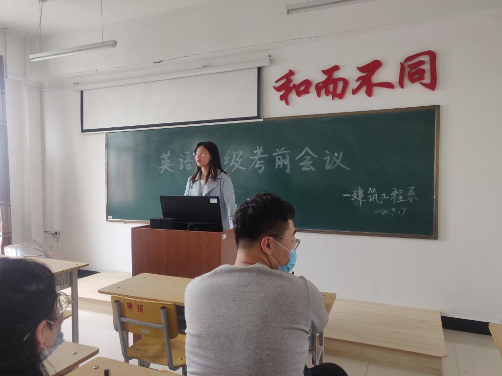 为加强考风考纪,助力学生英语四级、六级考试,建筑工程系于9月17日中午12点在一号教学区1401召开英语四级考前会议,此次会议由辅导员姬园梅老师主持,建筑工程系参加英语四级考试的同学参会。