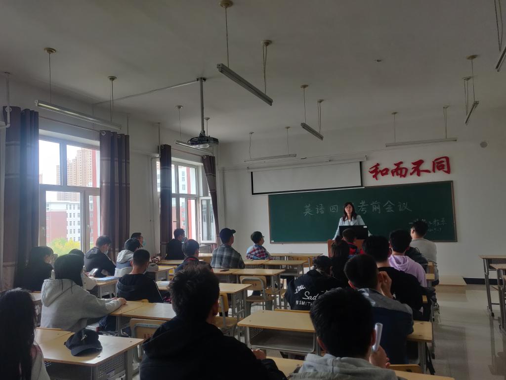 会议伊始,姬园梅老师宣读了四级考试的注意事项及考试时间,并提醒大家要从思想上对四级考试加以重视,把握好此次考试机会。她特别强调关于听力耳机调试问题,务必确保在考试过程中听力耳机能够正常使用。最后,姬老师着重要求同学们诚信应考,并给予同学们鼓励,希望同学们能够顺利通过此次四级、六级考试。