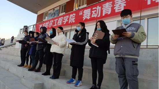 为增强我院学生身体素质,养成良好的生活习惯,建筑工程系于2020年11月6日早7点在体育场举办19级、20级“广场舞”比赛,本次比赛评审团有校团委张云慧、学院体育教研室老师杨忠林、韩淑梅、建筑工程系主任陈景鑫、建筑工程系党总支书记、学生工作副主任王丽萍,辅导员于敦续、蔡爽、孟津宇、宋雪微。