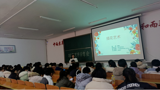 自古以来,插花便成了国人们的一种艺术表现形式,渐渐成为了一种时尚与情趣。为提升学生的艺术素养,缓解学习压力,在插花艺术中找到高雅的生活方式,建筑工程系于2020年11月27日在一号教学区1101举办插花艺术分享会,此次分享会由风景园林专业教师高雅讲授,建筑工程系部分同学参加。