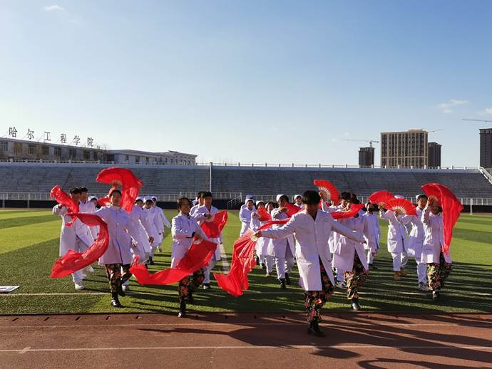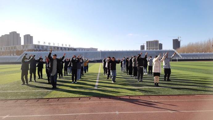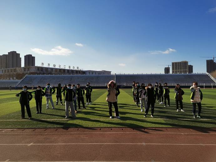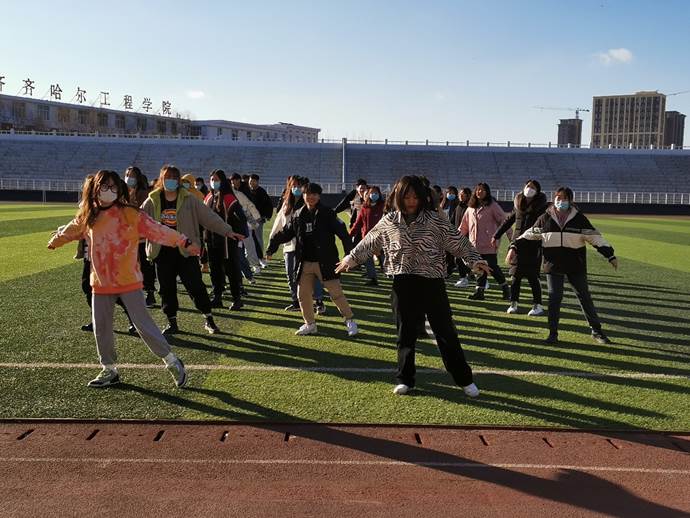 为促进同学们身心健康发展,增强同学们的身体素质,培养同学们的竞赛意识和团队合作精神,齐齐哈尔工程学院学生会于2020年11月30日中午在体育场举行“舞动青春”广场舞比赛,此次比赛由建筑工程系学生会承办,土木191班耿闯主持,校学生会文艺部部长及各系学生会文艺部部长担任评委,各系优秀早操班级陆续到场进行广场舞评比。