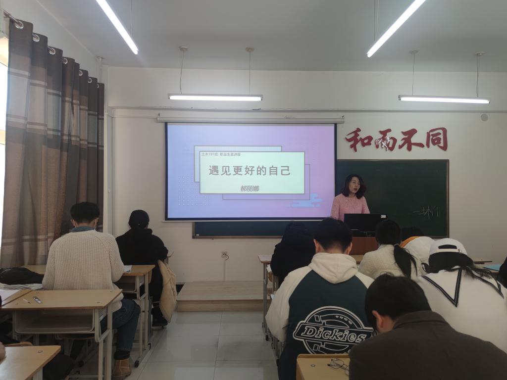 王雪老师展示了土木工程专业毕业生的走向,带领同学们分析了解自身能力,找出自身特长,挖掘自身潜力,从而朝着自己的规划方向努力。她详细的为大家讲解如何进行职业规划、进行行业认知、确定目标、提升能力。讲座过程中,王雪老师不时和同学们进行互动,鼓励大家积极规划自己的未来。