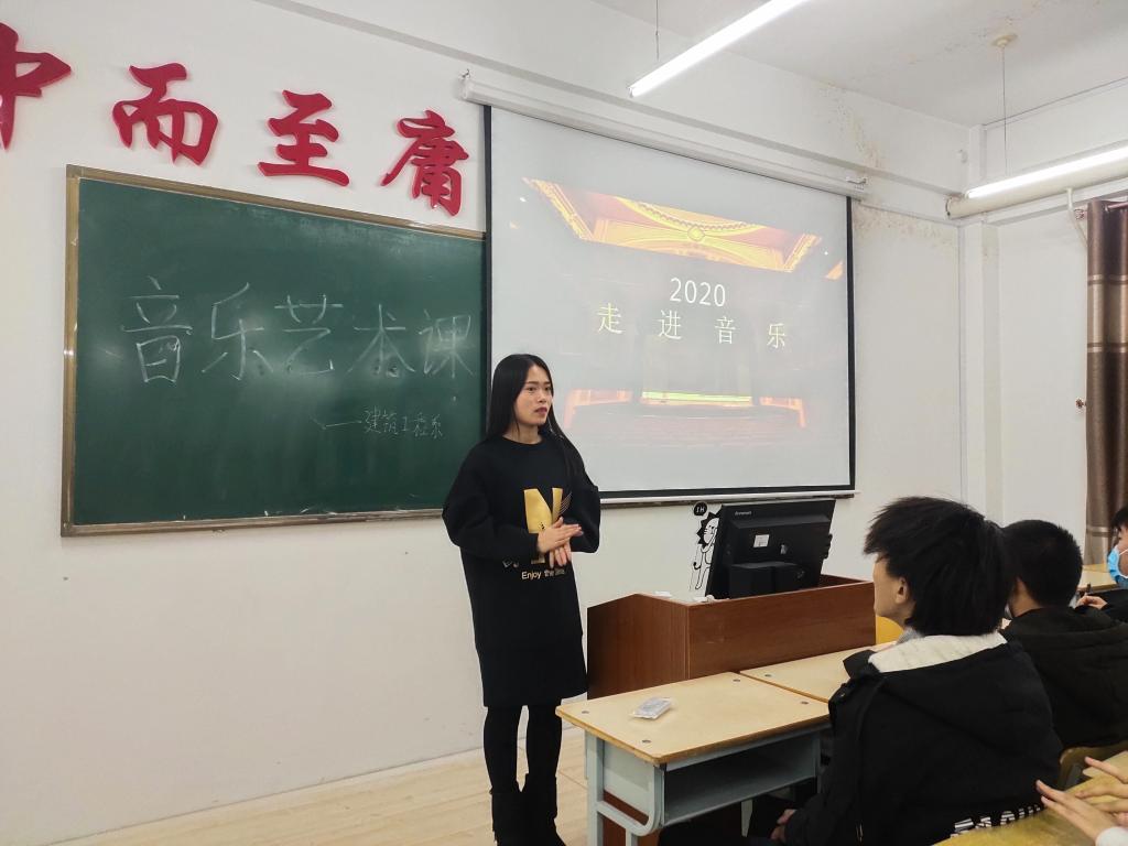 音乐,可以陶冶情操,并提高学生音乐艺术素养,建筑工程系于2020年12月16日在二教2511举办音乐素养课,此次艺术课由建筑工程系辅导员宋雪微老师讲授,建筑工程系部分学生参加。