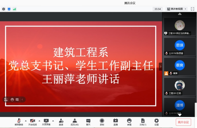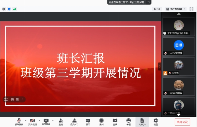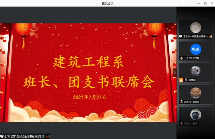 为更好的开展第三学期实习工作,确保实习期间学生人身安全,建筑工程系于7月27日通过腾讯会议召开了第三学期班长、团支书联席会,会议由学生会指导教师蔡爽主持,学生工作副主任、团委书记以及各班班长、团支书参会。