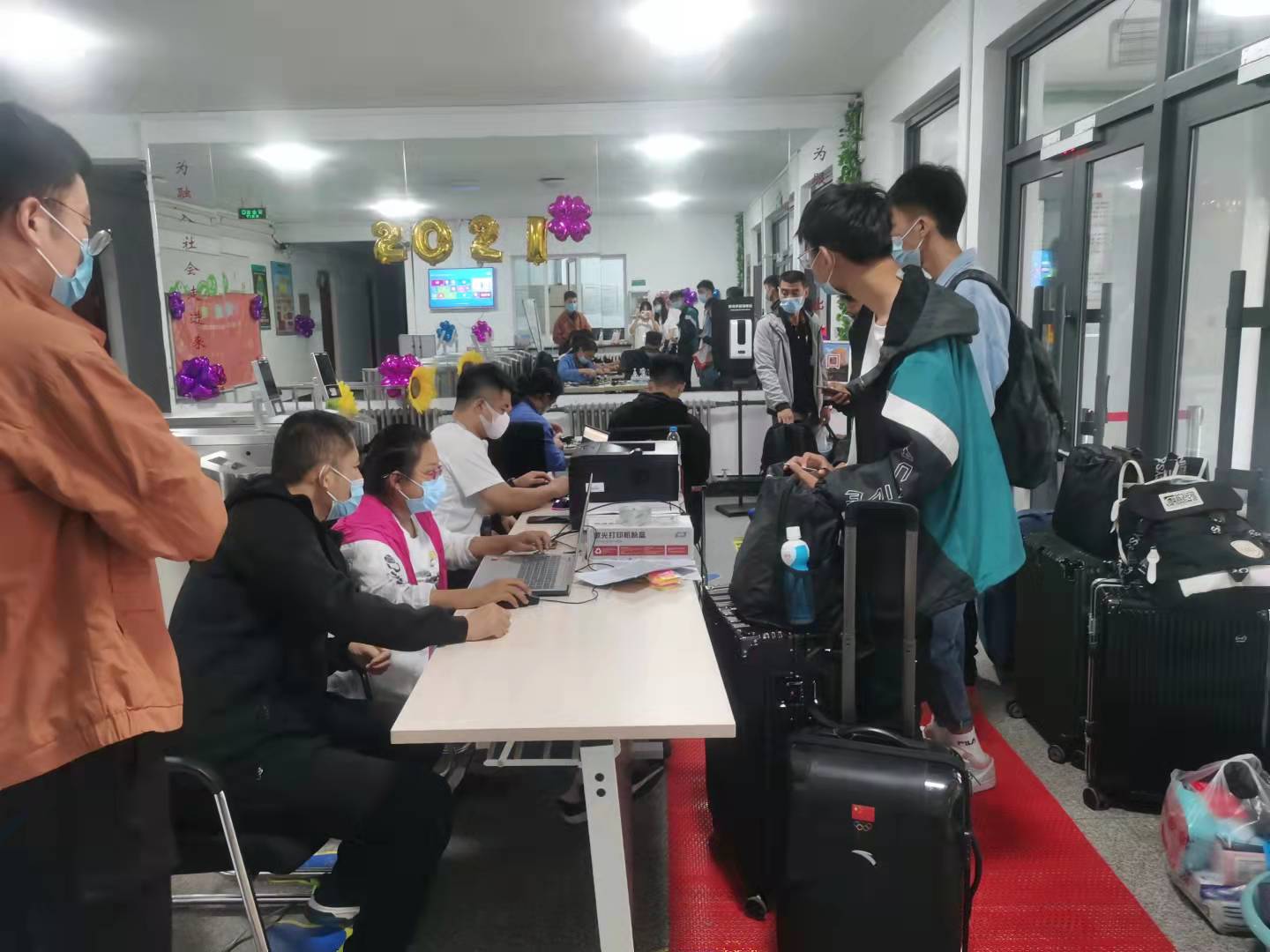 在疫情防控常态化的背景下,在各公寓正门设置了学生引导和迎新专属通道,做好了公寓消毒、防疫设备等防控准备工作。在迎新期间,志愿者们热情上前帮助学弟学妹们搬行李,将新生指引到指定寝室进行手续办理;学长们在公寓门前架起遮阳棚,为在公寓门口等候的家长提供了较为舒适的环境,为家长和等待办理手续的新生准备了零食、糖果、热茶等供其品尝。同时,各公寓还为新同学们准备了爱心卡片,他们可以将自己在大学里的愿望写下,粘在心愿墙上。为使迎新活动更加新颖,我系还为新生举办了“幸运抽奖”活动。据统计,“幸运抽奖”活动我系一共分发出150余份精美小礼品。