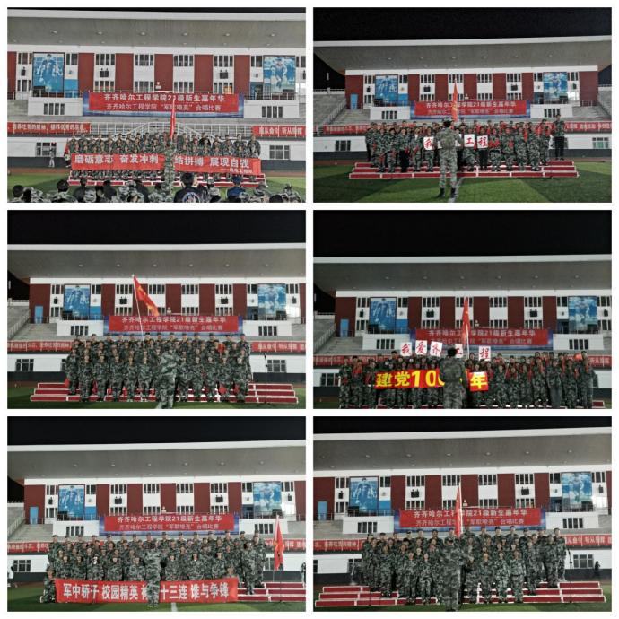 学唱军歌,是新生军训的重要内容之一,同时也是进行国防教育、爱国主义教育、爱校教育的有效形式。来自各系的10个连队参加了本次合唱比赛,他们用整齐的队列、飒爽的英姿、嘹亮的歌声表达着在军训生活中的收获与感悟。与以往不同,本次的比赛评委由各系的学生会主席和各营营长担任,经过激烈的角逐,二十二连获得一等奖,十三连、三十一连获得二等奖,三十连、十一连获得三等奖,十九连、一连、十七连和三连获得优秀奖。