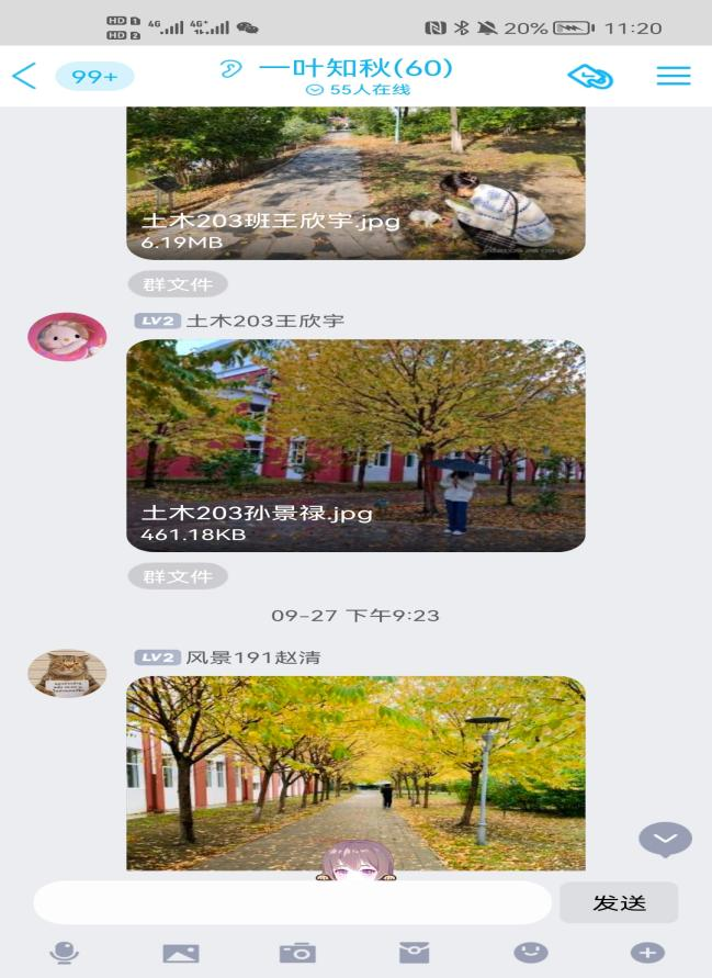 活动正式开始前,由工作人员向选手讲解比赛详细规则及注意事项。讲解过后,“一叶知秋”活动正式开始,大家把事先在校园内拍摄的美丽秋景以图片的形式发送到QQ群里面,展现出秋天独特的美。同学们用照片讲述校园的故事。所有参与人员讲述完照片背后的故事后由大家一起对作品进行评分。